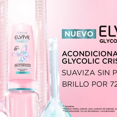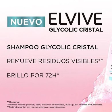 Descubre nuestro Shampoo Elvive Glycolic Cristal para eliminar el residuo visible al instante con Glicina Anti-residuos y Ácido Glicólico.