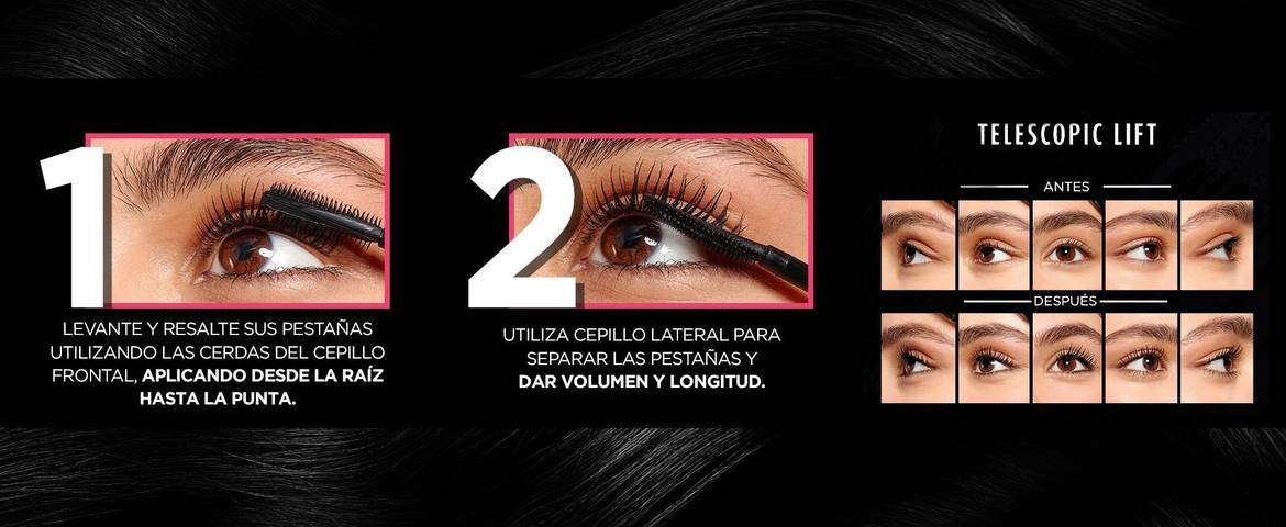 ¡Lleva tus pestañas al siguiente nivel con Telescopic Lift de L'Oréal Paris! Una mascara de pestañas que te da +5mm de alargamiento, volumen y curvatura al instante.